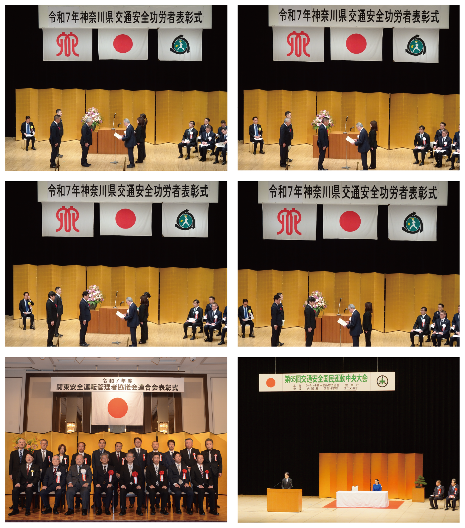交通功労者・優良管理者・優良事業所・優良運転者等に対する国・団体及び県警察への表彰上申や地区管理者会からの表彰上申を受け、連合会表彰基準に基づいて連合会会長表彰を毎年実施し、交通事故防止を行うとともに功労・貢献された方々の賞揚に努めています。